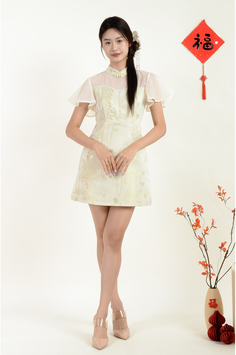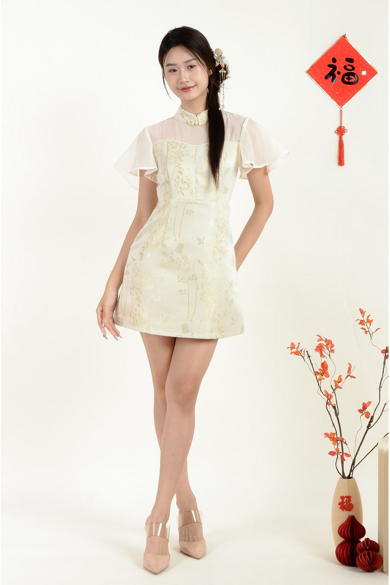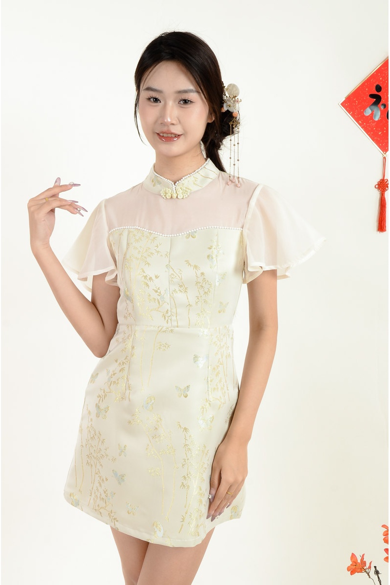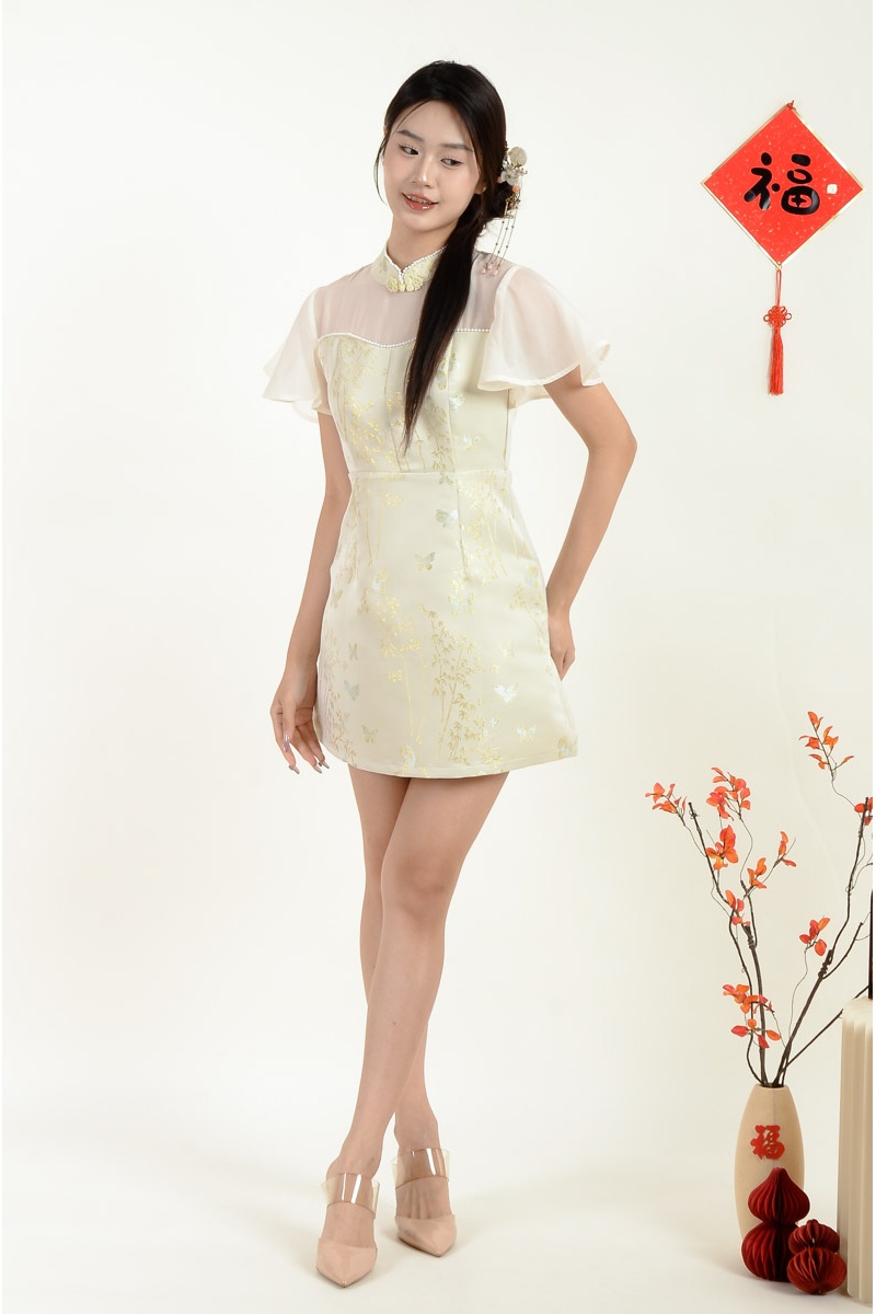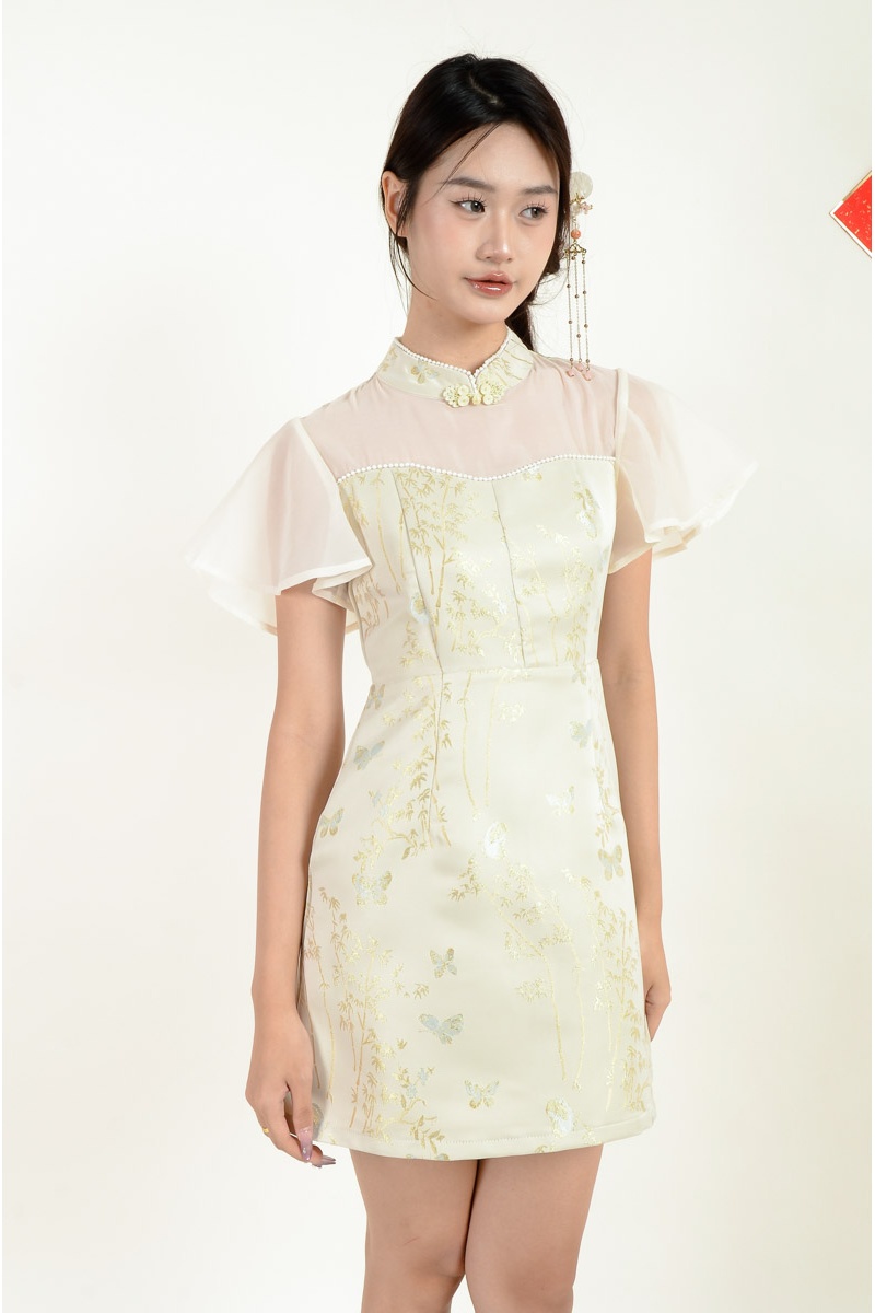 Zendaya Cheongsam with Mesh Sleeve - Yellow